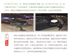 20**年02月15日,我司接受某產(chǎn)險(xiǎn)公司委托,對其承保的蘇BXXXXX保時(shí)捷卡宴在20**年01月17日21時(shí)在甘肅省武威市天祝藏族自治縣行駛時(shí)避讓車輛導(dǎo)致標(biāo)的車撞墻一案進(jìn)行調(diào)查。